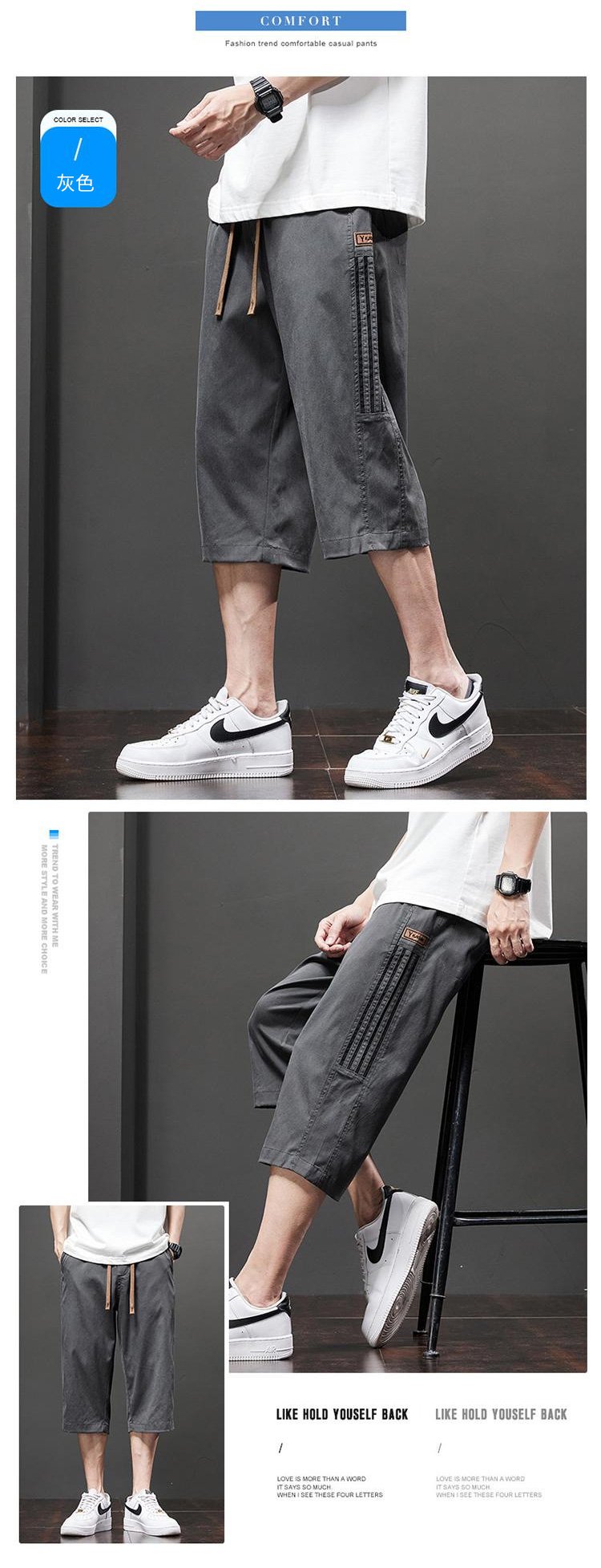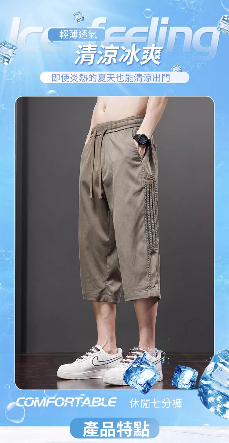 男士冰絲七分短褲