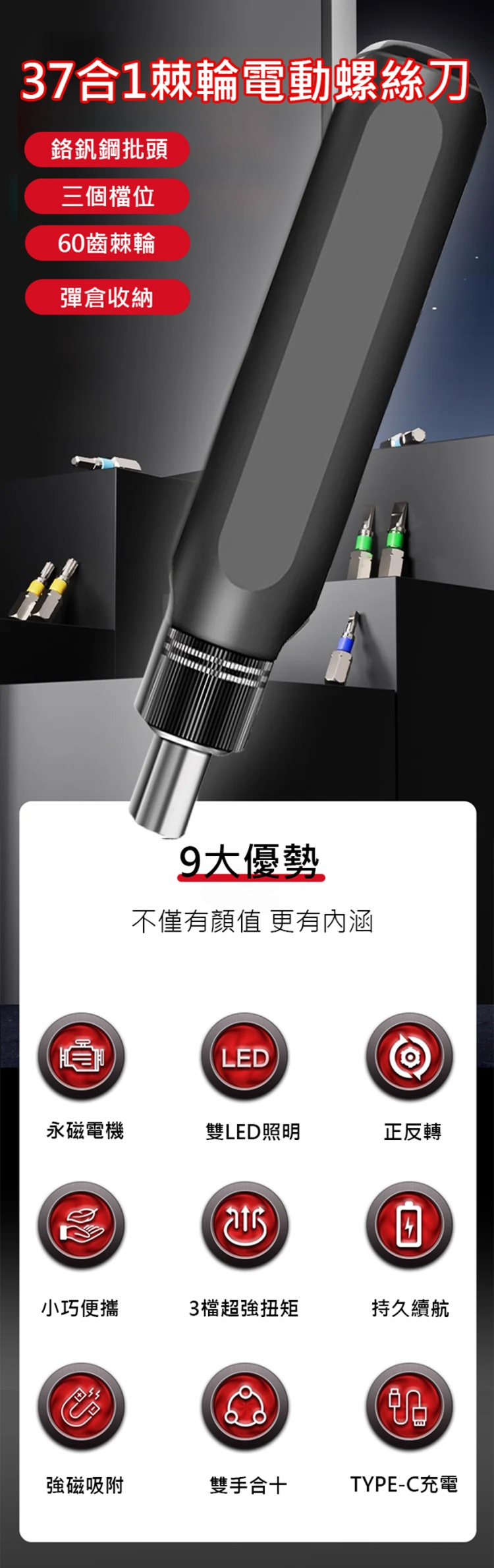【十年用不壞】【37合1】棘輪電動螺絲刀